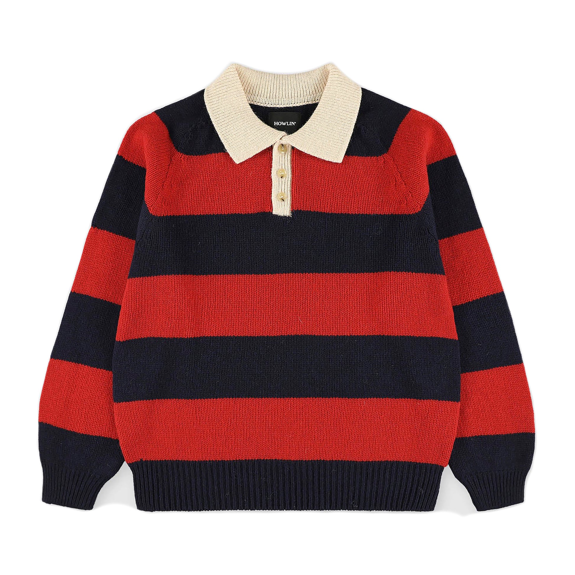 Absolute Polo er Howlin’s moderne fortolkning af den tidløse rugby-silhuet - en strikket klassiker i nyt format. Fremstillet i Skotland af 100% blød lammeuld, kombinerer den markante striber med udsøgt håndværk. Takket være en særlig vaskeproces føles ulden ekstraordinært blød - ofte forvekslet med cashmere. Den sømløse “whole garment”-konstruktion giver en glat og behagelig pasform uden syninger mellem krop og ærmer.