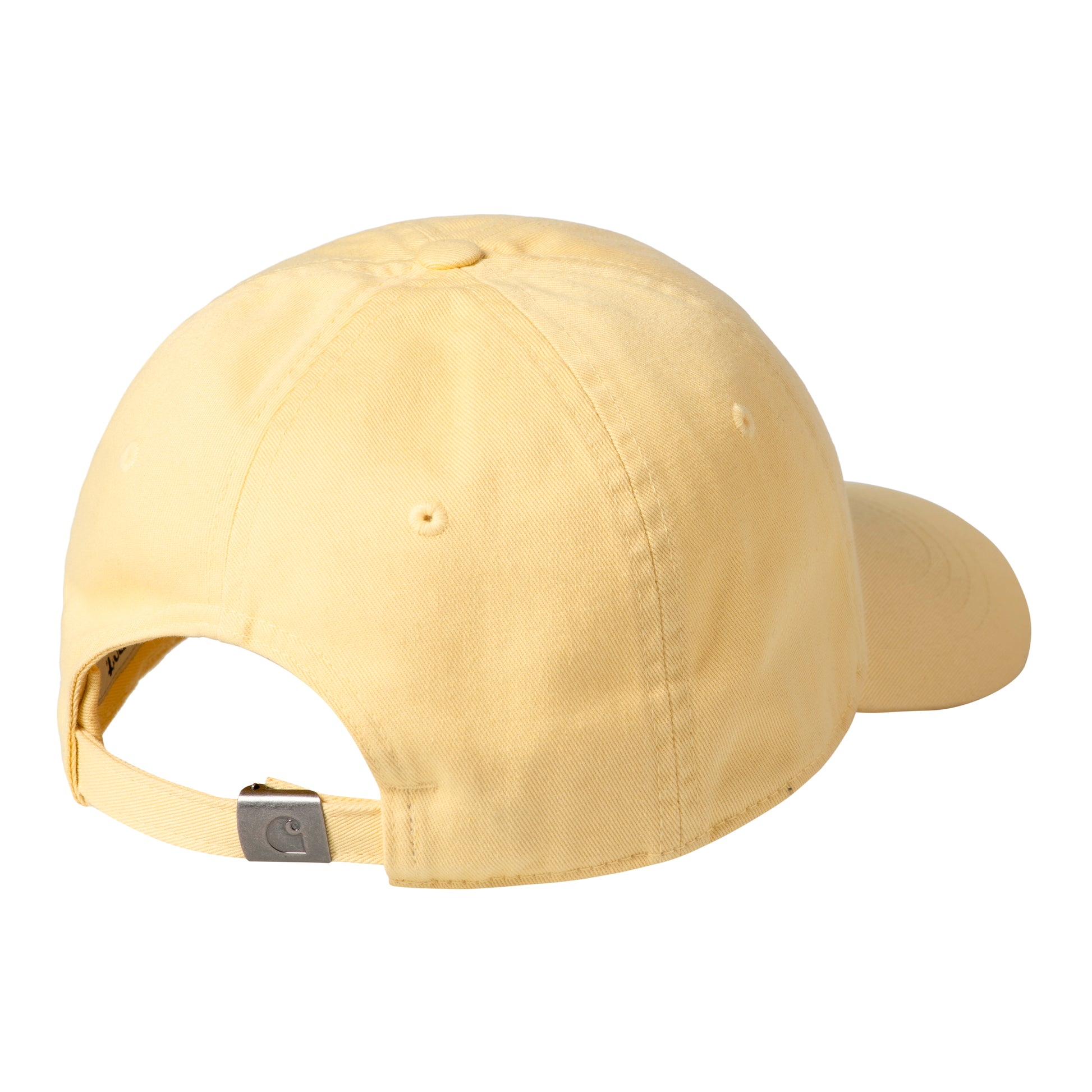 Madison Logo Cap is an adjustable six panel cap with fixed, rounded brim and embroidered Carhartt WIP C logo on the front. The cap has a strap with a metal buckle at the back for optimal adjustment, it is unlined and in washed cotton twill with embroidered ventilation holes on the side. The Madison Logo Cap is a standard in the collection with new colors every season.