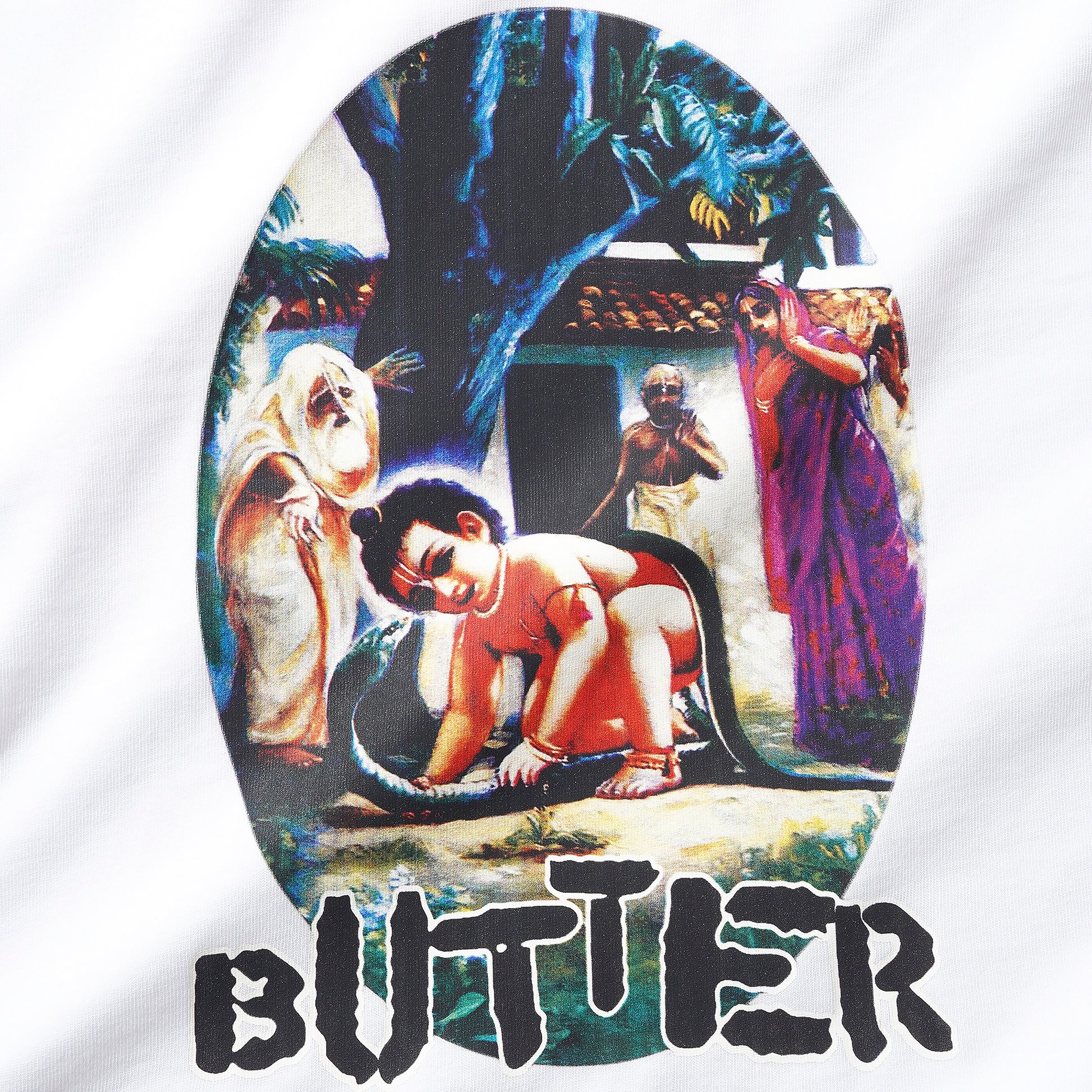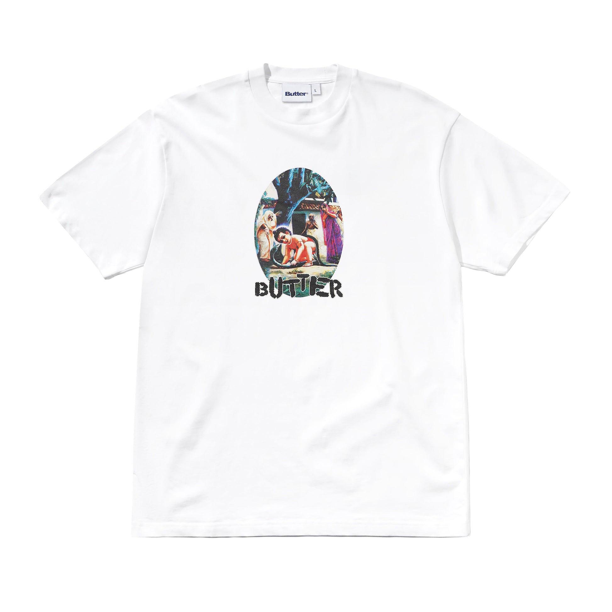 Nimai Tee er en kortærmet t-shirt af bomuld med et grafisk print foran.