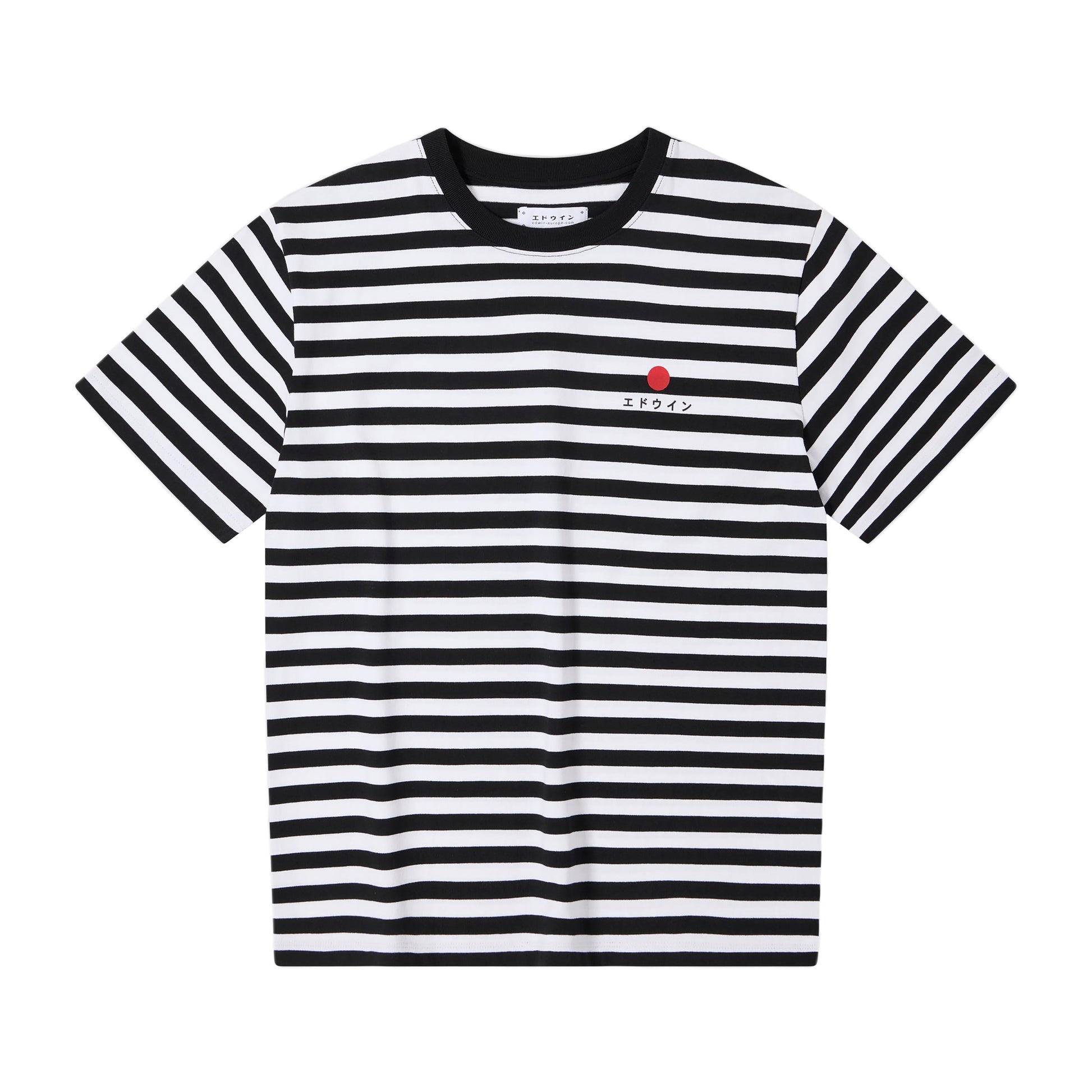 Regular Striped T-Shirt er en stribet, kortærmet t-shirt i regular fit pasform. Den har et subtilt japansk solprint på brystet.