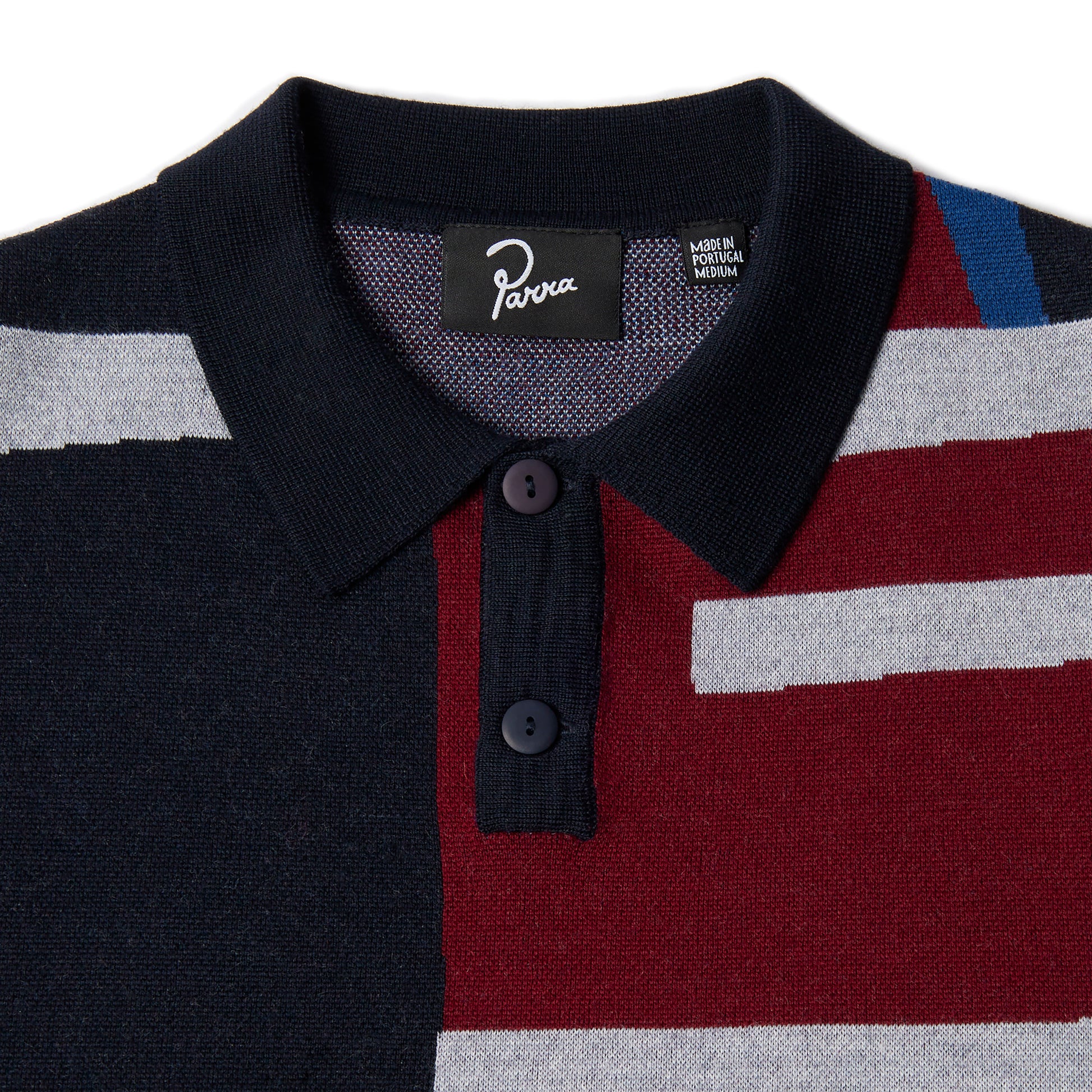 Strikket polo i en blød merinouldsblanding med Vertical Forest-motivet over hele designet. Fremstillet i Portugal i jacquardstrik med vævet label foran. Poloen har delvist knappelukning med to tone-i-tone knapper samt ribstrikket krave, manchetter og kant.