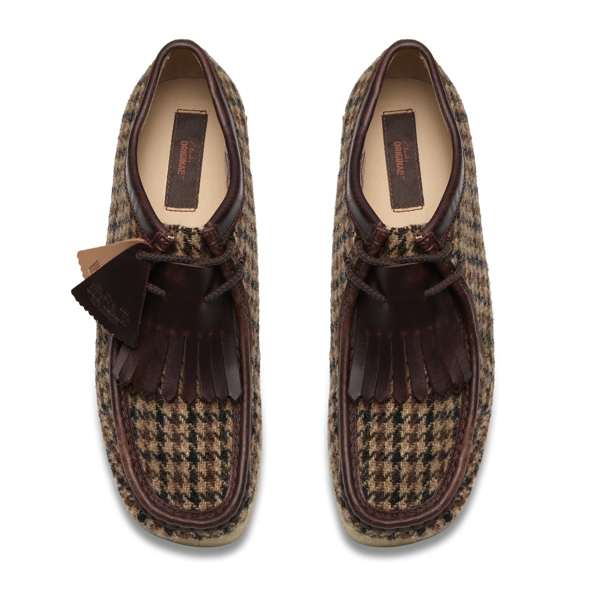 En limited-edition udgave af den ikoniske Wallabee™, skabt i samarbejde med Harris Tweed. Overdelen i rigt brun Harris Tweed kombineres med læderdetaljer for et raffineret udtryk. Skoen fuldendes med autentiske Harris Tweed-mærker, eksklusive Clarks Originals FOBs, aftagelig kiltie og en klassisk rågummisål, der sikrer komfort og greb. Et unikt møde mellem britisk håndværk og tidløs designarv.
