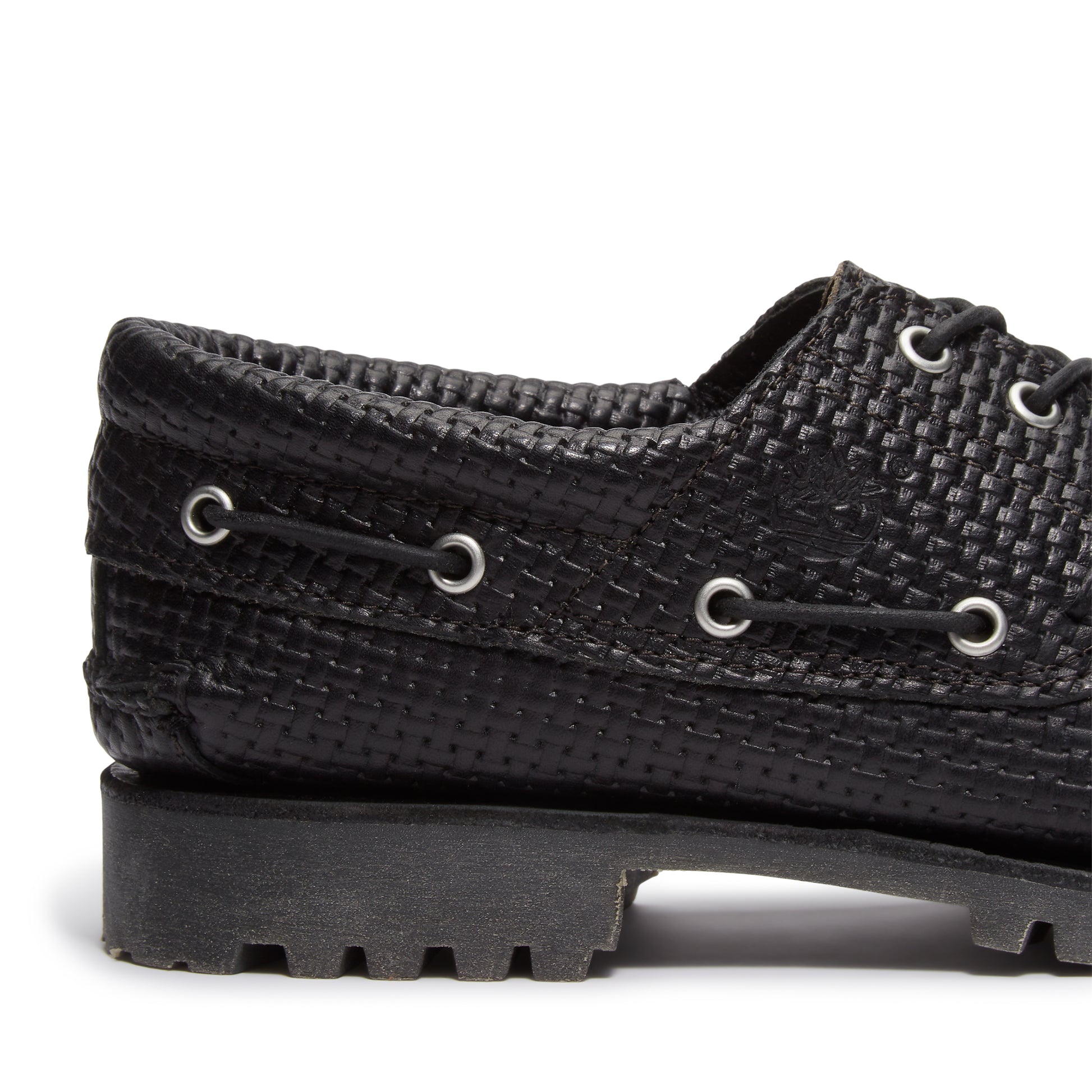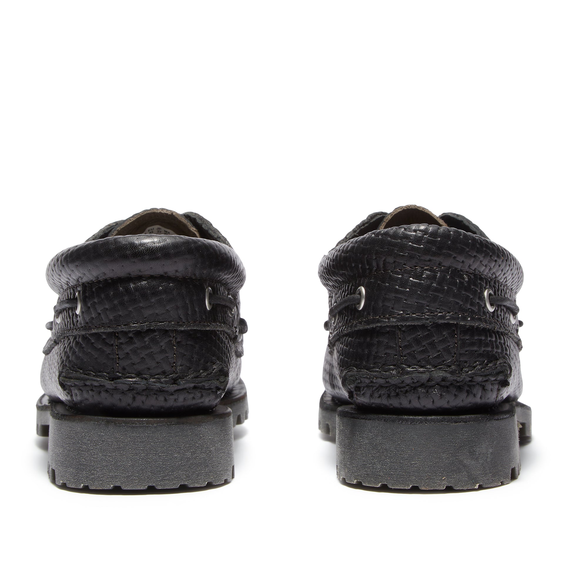 Den klassiske Timberland® 3-Eye Lug Boat Shoe er skabt i Premium Timberland®-læder og fuldendes med den ikoniske gule gummisål. Skoen er håndsyet og designet med polstret læderkrave, læderfor og råhudssnørebånd for maksimal komfort og holdbarhed.