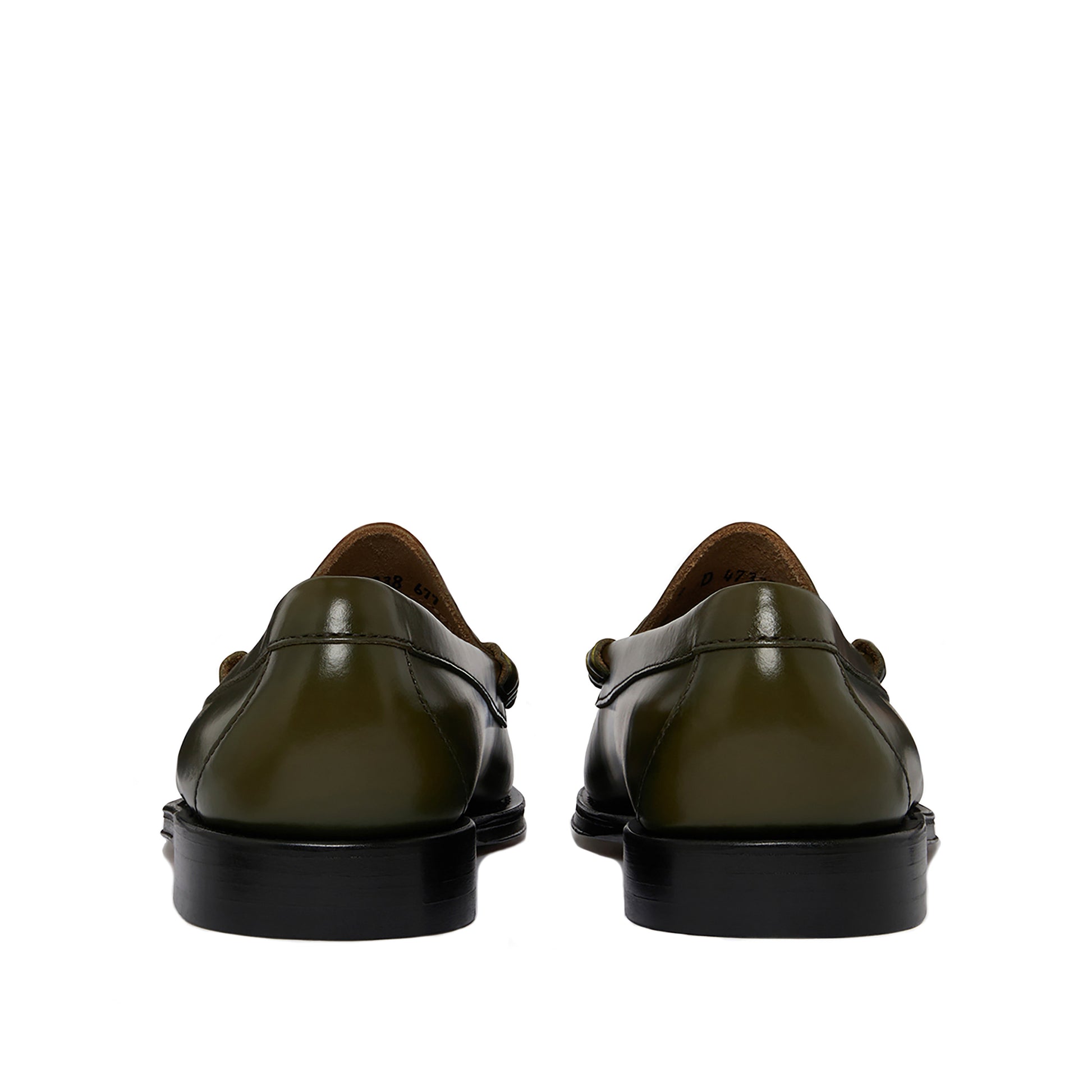 Weejun Heritage Larson Moc er i skinnende glat læder og håndsyet efter de originale teknikker anvendt til de første Weejuns fra 1936. Denne model er med frynset kiltie samt læderkvaster foran og med en blød EVA gummi ydersål.