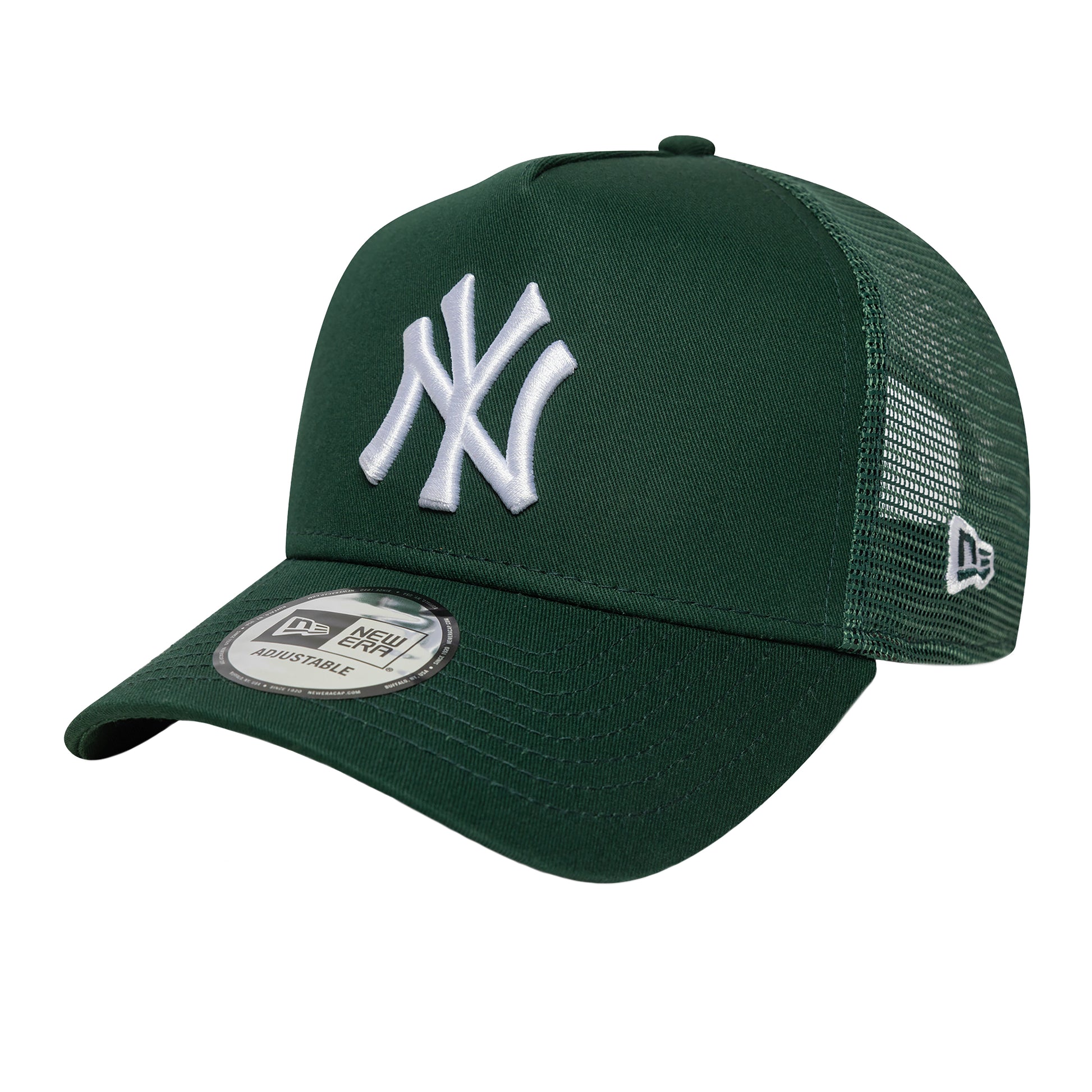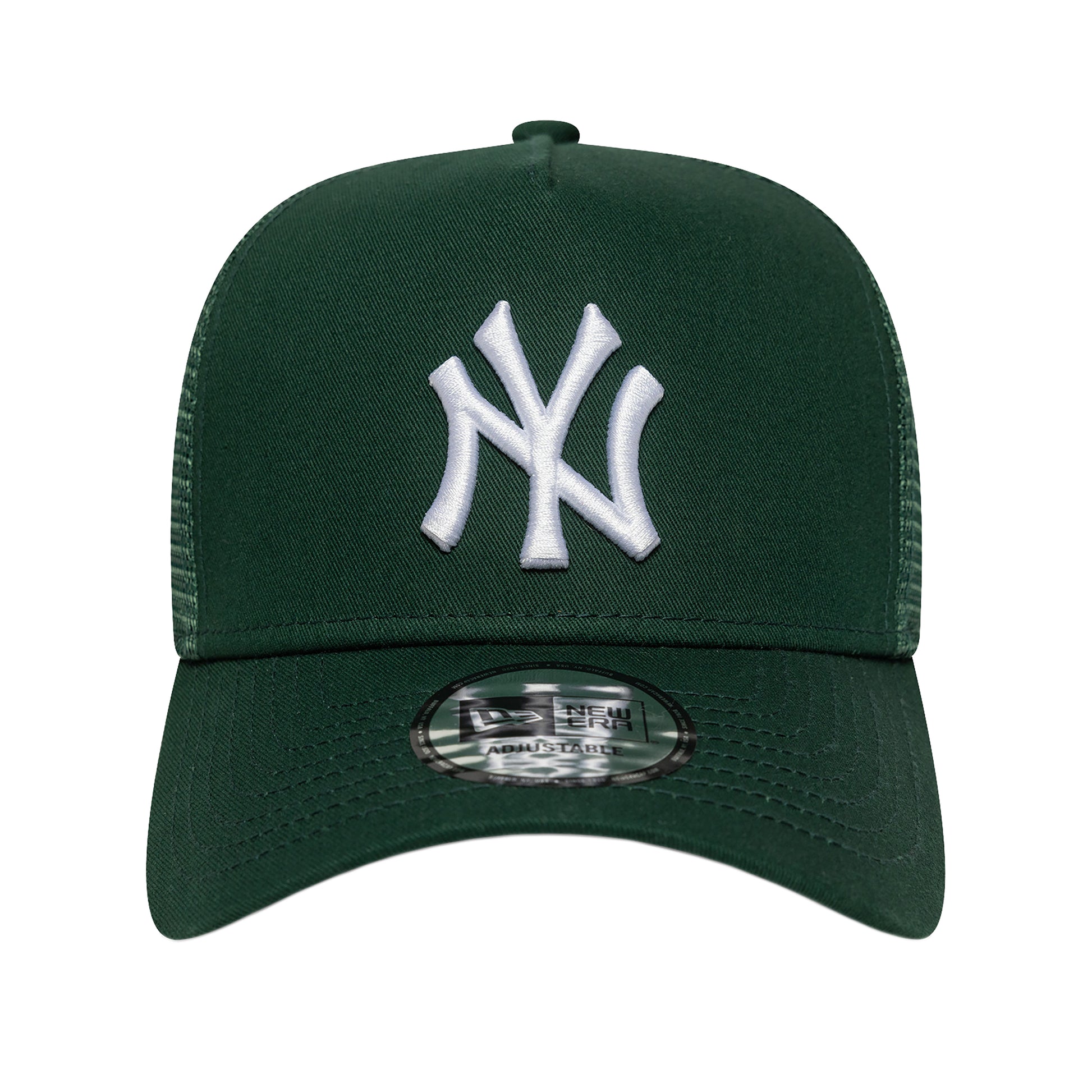 MLB League NY 9Forty Trucker Cap is a cap with an embroidered 'New York Yankees' logo on the front and an embroidered New Era logo on the side. The cap has a curved brim, mesh on the sides and an adjustable snapback closure at the back for optimal fit.