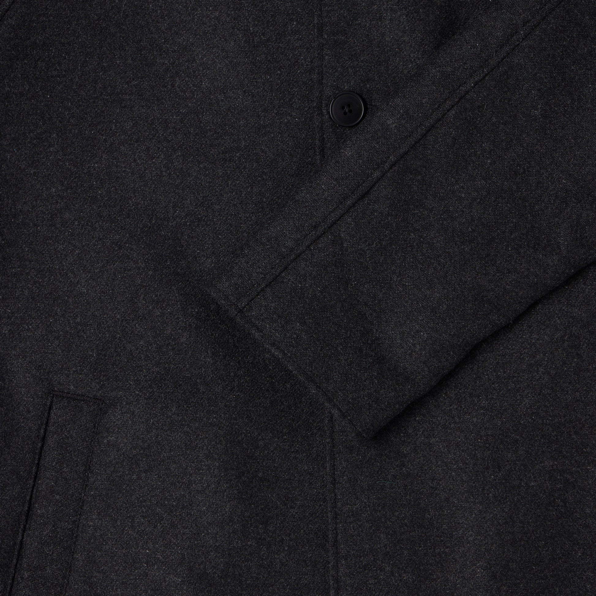 En oversized jakke i tungt dobbeltsidet uldstof (465 g/m²), der kombinerer klassisk design med funktionel varme. Jakken har fire-knaps lukning, to frontlommer med kant og en karakteristisk metalkæde-detalje ved kraven. Den tætte uldblanding giver både vægt og isolering til de kolde måneder.