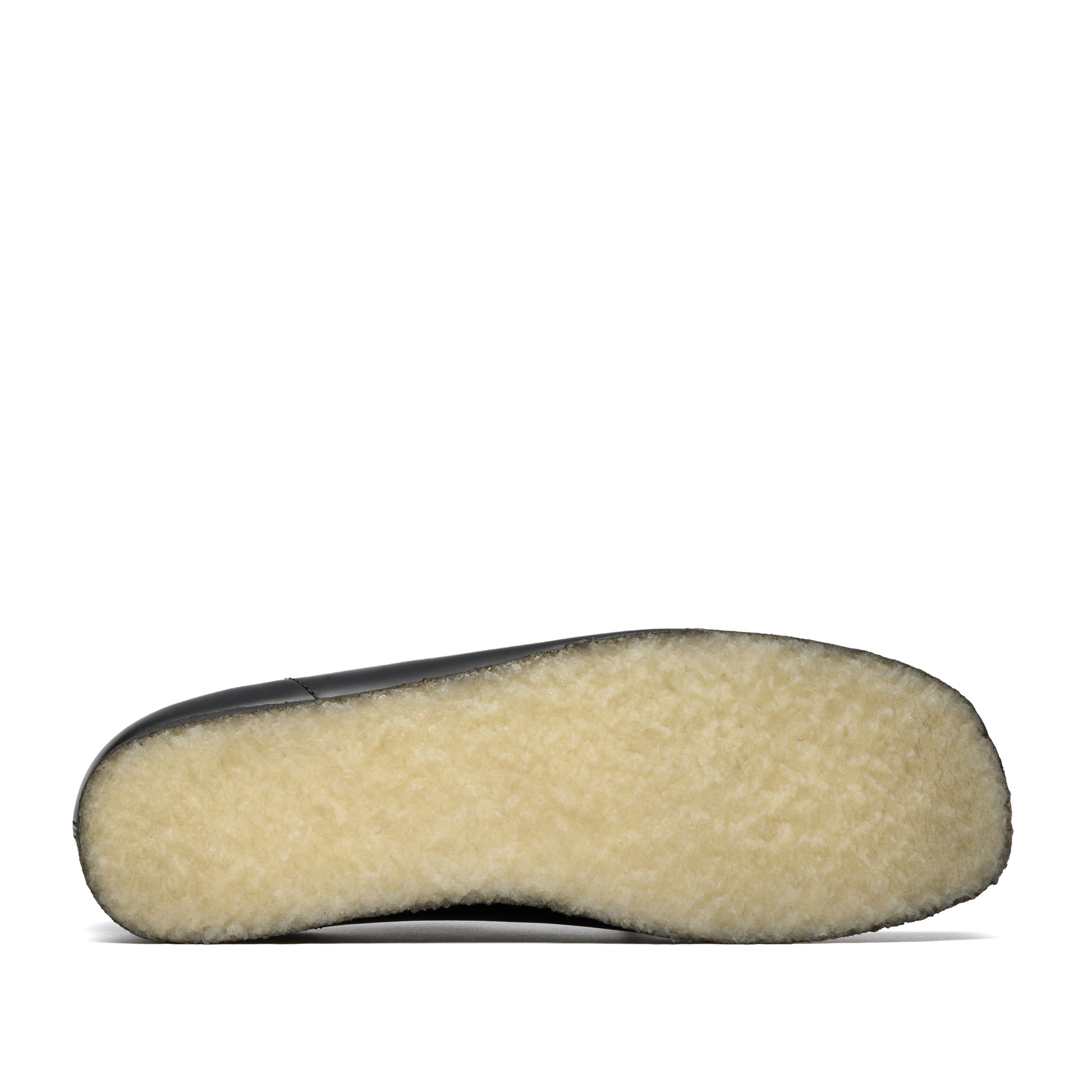 En raffineret fortolkning af den ikoniske Wallabee-silhuet i blank sort dress-læder. Designet med snøretassels, aftagelig tone-i-tone kiltie og tre eksklusive FOBs - herunder et særligt 200-års jubilæums-FOB. Den naturlige rågummisål med sort spray, håndsyet apron-søm og klassisk mokkasin-konstruktion giver både komfort og tidløs elegance.