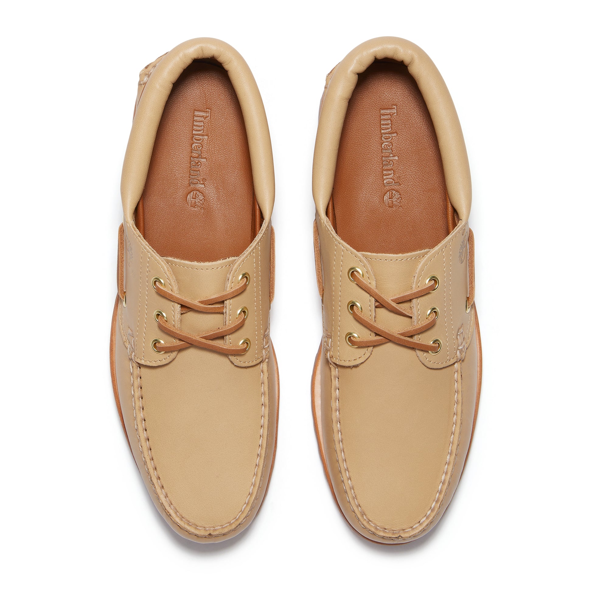 Timberland Founder’s 3-Eye Lug Handsewn Boat Shoe. En ikonisk håndsyet boat shoe fra Timberland, kendt for sin overlegne kvalitet og tidløse konstruktion. Fremstillet i Premium Timberland®-læder med polstret læderkrave, læderfor og et 360° snøresystem med råhudssnørebånd for den klassiske pasform. En robust og stilfuld sko, der bygger videre på Timberlands arv af håndværk og holdbarhed.