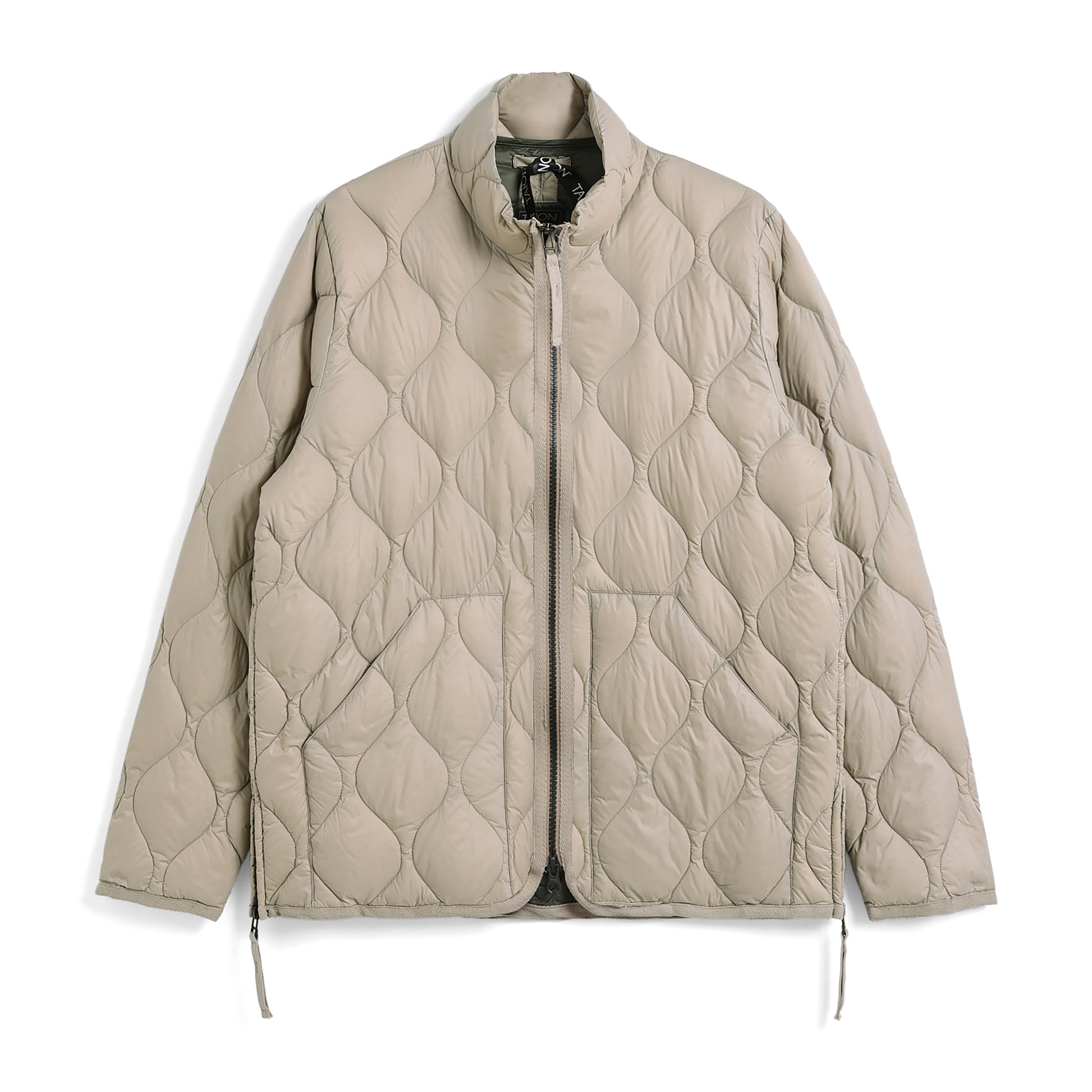 Military Hi Neck W-Zip Down Jacket er en quiltet liner fra TAION. Lineren har en høj hals, gennemgående lynlås, to rummelige lommer, samt sideslidser med lynlås. Det er en soft shell jakke med let dun / polyester foer i onion mønster med tone-i-tone kantebånd og lynlåse.