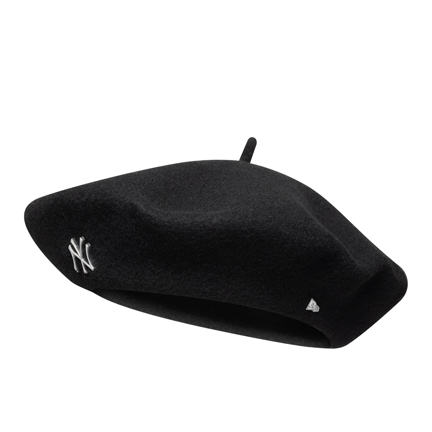En beret hue fra New Era. Den har et New York Yankees logo foran samt et New Era logo i venstre side.